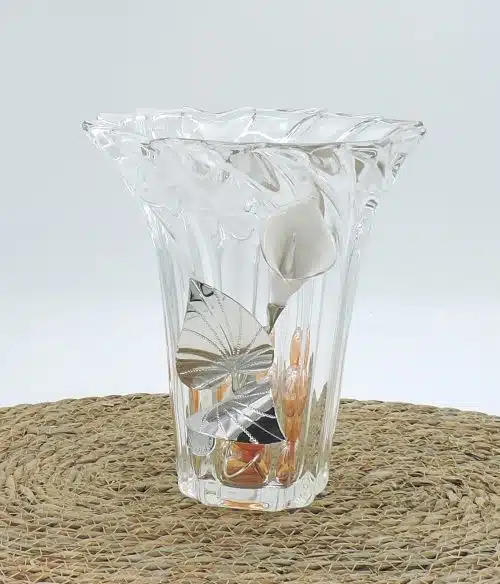 Vaso in cristallo con ramo edera in argento fatto a mano