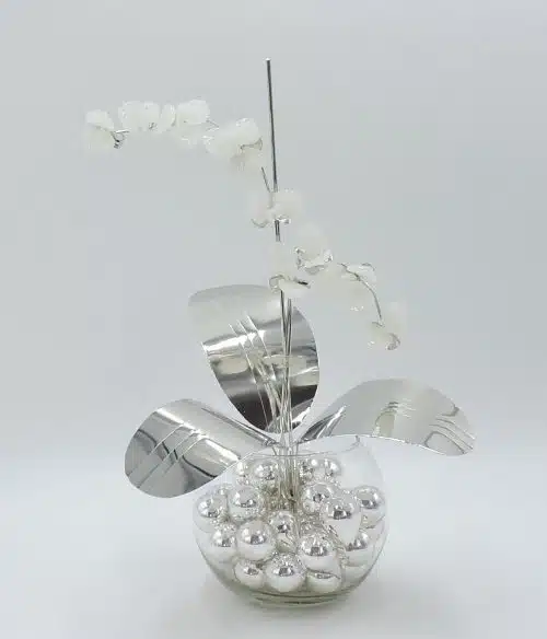 Vaso con orchidea in vetro soffiato e argento, fatta a mano