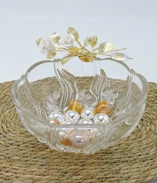 Regalo nozze d’oro con portacioccolatini in cristallo con spighe
