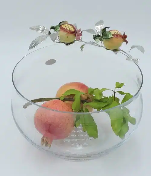 Melograno portafortuna in argento e porcellana capodimonte su pietra minerale