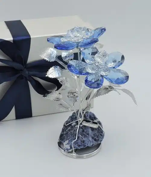 Vaso in cristallo con ramo edera in argento fatto a mano