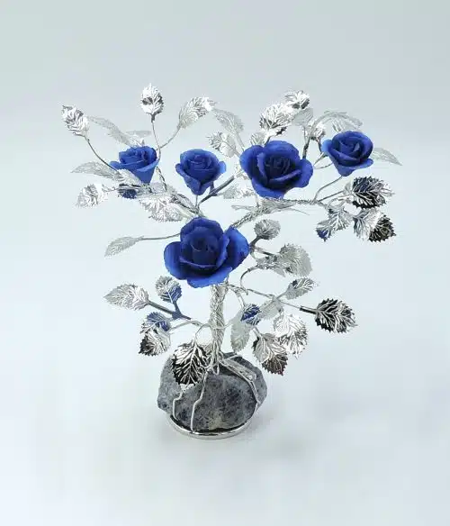Fiore in cristallo e argento su quarzo blu fatto a mano