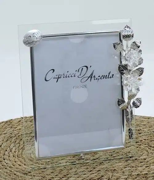 Cornice portafoto nozze d’argento, in argento e con rosa rossa, 15×20