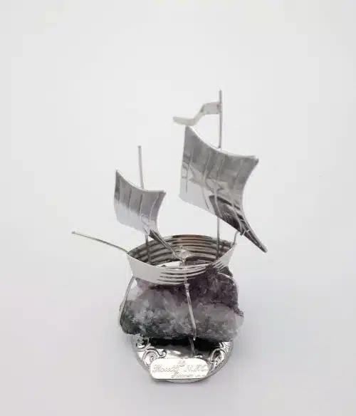 Fiori in cristallo e argento su pietra minerale fatto a mano