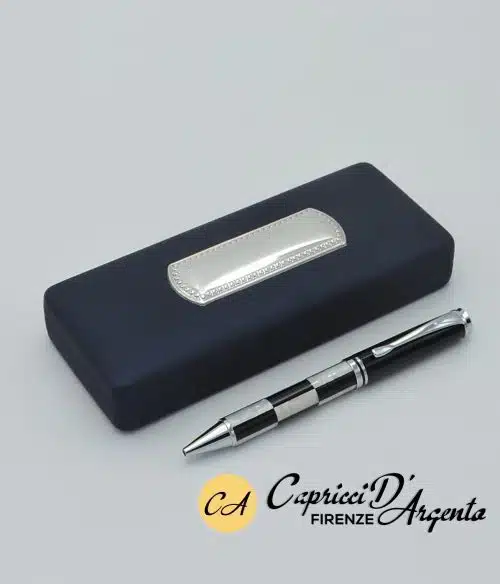 Set di eleganti penne roller e sfera in scatola regalo con argento