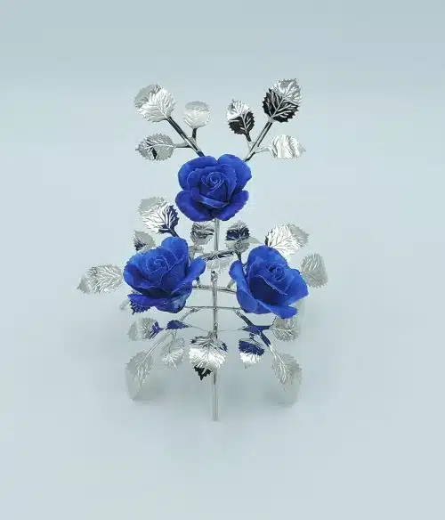 Rose blu in vero satinato e argento, realizzata artigianalmente